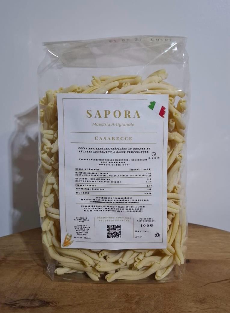 Nos Casarecce artisanales sont élaborées à partir de semoule de blé dur de qualité supérieure, selon un savoir-faire italien traditionnel.