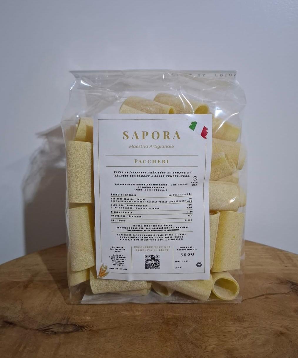 Nos Paccheri artisanaux sont élaborés à partir de semoule de blé dur de qualité supérieure, selon un savoir-faire italien traditionnel.